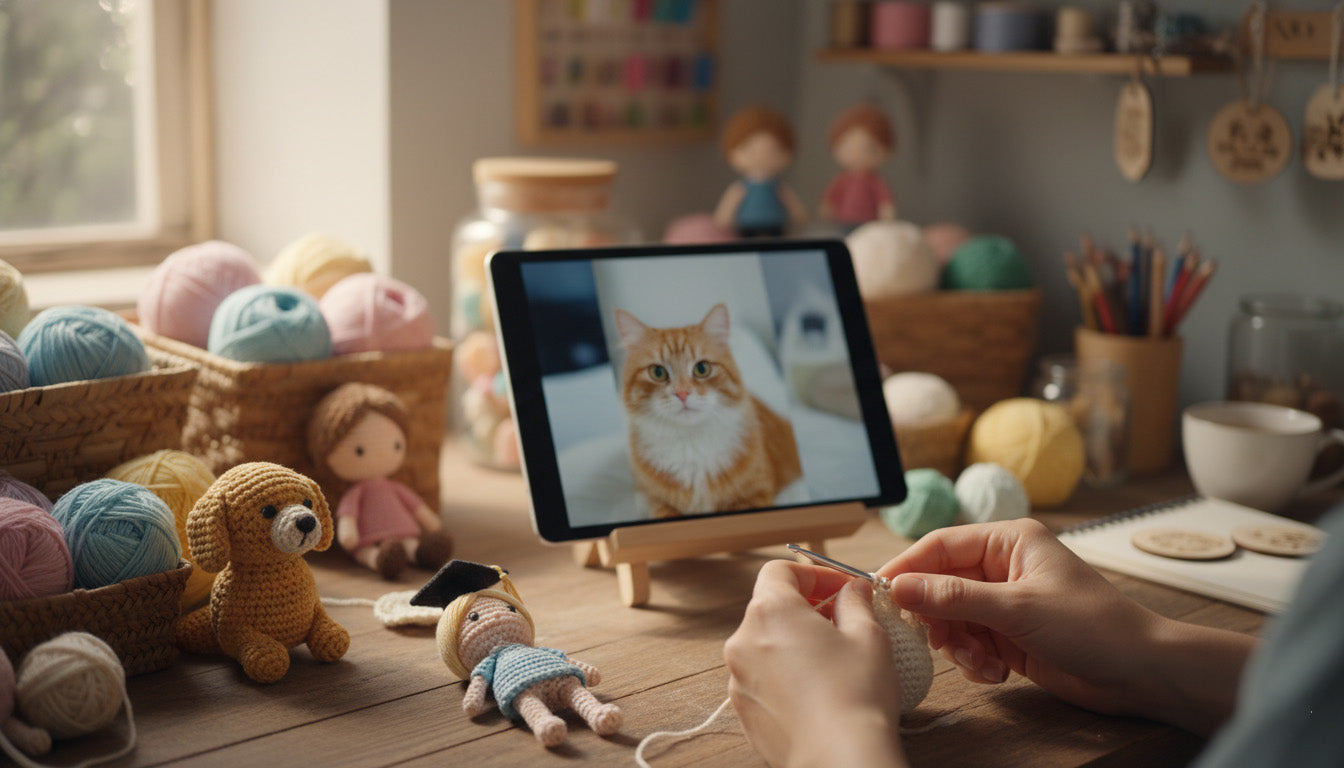 Every pet's unique personality, every family's shared laughter, every special bond – these are the moments that truly define us. We meticulously transform your beloved photos into exquisite, handmade crochet dolls and personalized projection jewelry, each piece imbued with the warmth of genuine emotion and the artistry of dedicated craftsmanship.